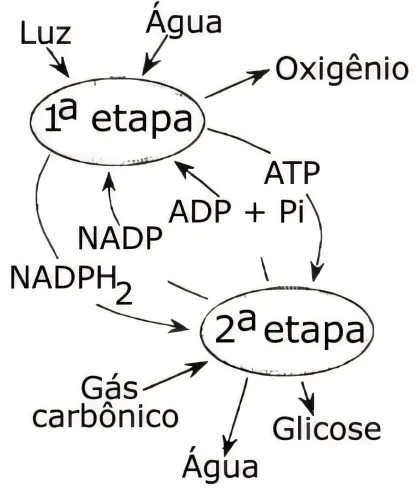 BiologiaUFMS2017A fotossíntese, importante processo realizado pelas células vegetais, pode ser resumida pelo esquema abaixo.