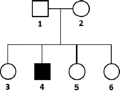 BiologiaSLMANDIC2018No heredograma, o indivíduo 4 é o único membro da família afetado por uma determinada doença genética.