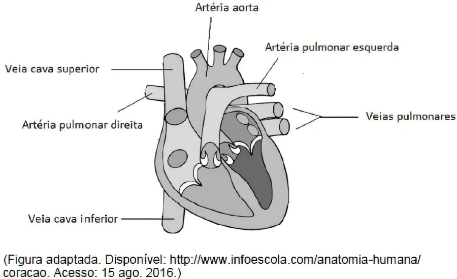 BiologiaSLMANDIC2017A figura facilita a visualização da estrutura do coração humano, especialmente dos seus compartimentos e dos grandes vasos sanguíneos que o servem.