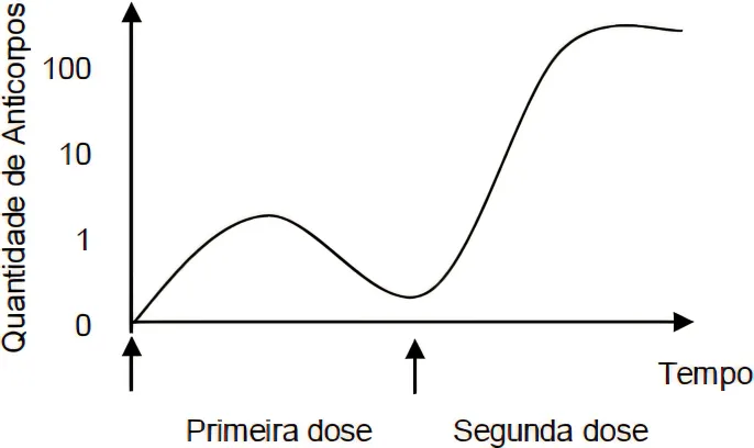 BiologiaCESMAC2015As vacinas representam as principais armas existentes contra as doenças infecciosas humanas. Considerando a forma como as vacinas funcionam na ativação da resposta imune do hospedeiro, analise o gráfico abaixo e assinale a alternativa correta.