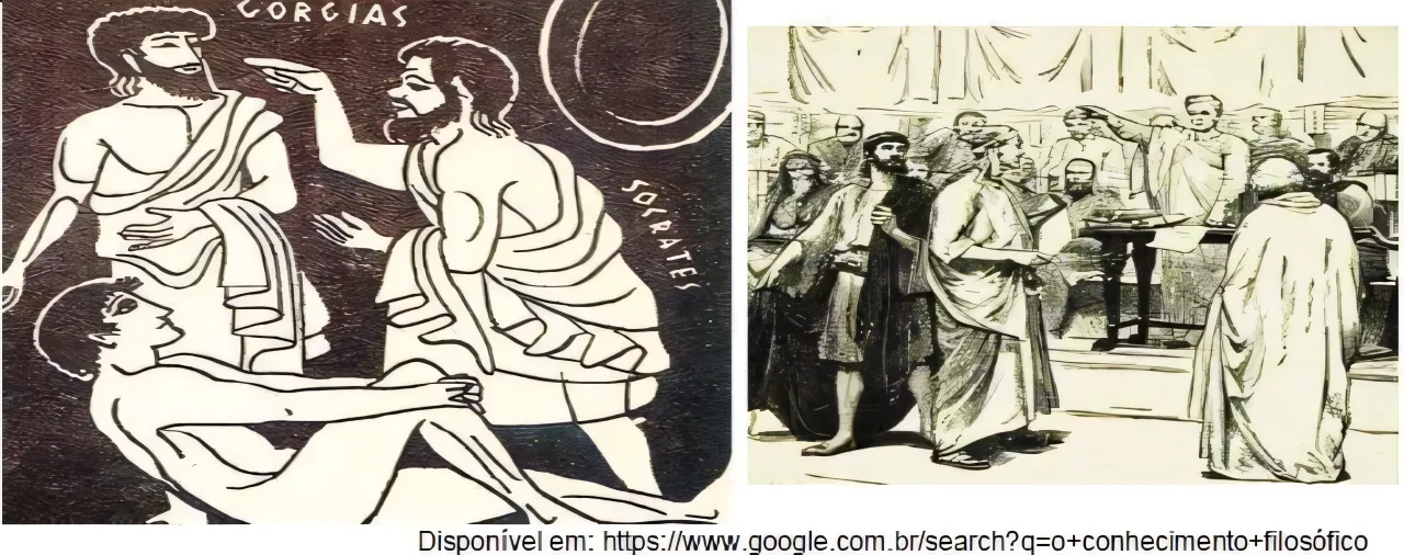 Fonte: OSBORNE, Catherine. Filosofia Pré-Socrática. Porto Alegre: l&PM, 2013, p. 136.Em muitos de seus diálogos, Platão põe em relação o seu próprio pensamento e a sofística. Sócrates encarnou um modelo de filósofo construído por Platão.