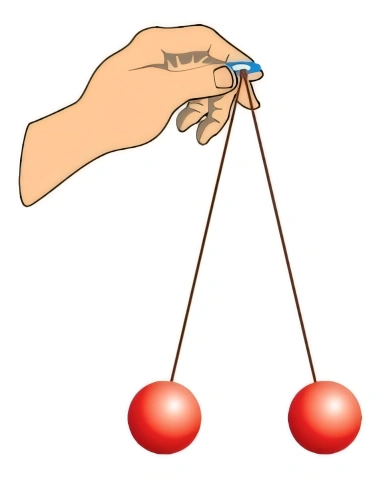 FísicaFMJ2017O bate-bate é um brinquedo composto por duas esferas de material rígido presas a dois fios e a um anel. O objetivo do brinquedo consiste em fazer as esferas girarem em sentidos opostos e se chocarem continuamente em cima e embaixo.