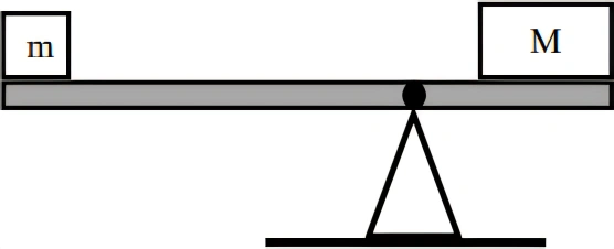 FísicaUFT2022A figura a seguir ilustra dois objetos de massa m e M apoiados em uma gangorra a distâncias distintas do ponto de equilíbrio. A massa M é maior que a massa m.
