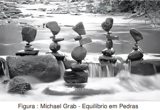 Na figura, é possível observar esculturas construídas com a sobreposição de pedras.