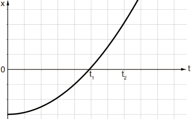 FísicaPUC-RS2016Para responder à questão, analise o gráfico abaixo. Ele representa as posições x em função do tempo t de uma partícula que está em movimento, em relação a um referencial inercial, sobre uma trajetória retilínea. A aceleração medida para ela permanece constante durante todo o trecho do movimento.