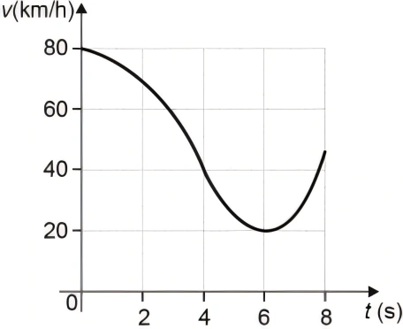 FísicaUNCISAL2019O gráfico abaixo apresenta a variação da velocidade, em quilômetros por hora, em função do tempo, em segundos, de um veículo que se desloca em linha reta por uma estrada.