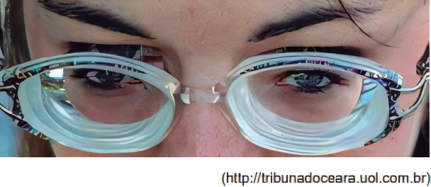Observando os detalhes da imagem e sabendo que essa pessoa apresenta um único e mesmo defeito de visão nos dois olhos, pode-se afirmar que ela é portadora de