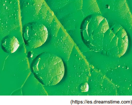 FísicaUEA2019A figura mostra algumas gotas de água que atuam como lentes esféricas sobre uma folha.
