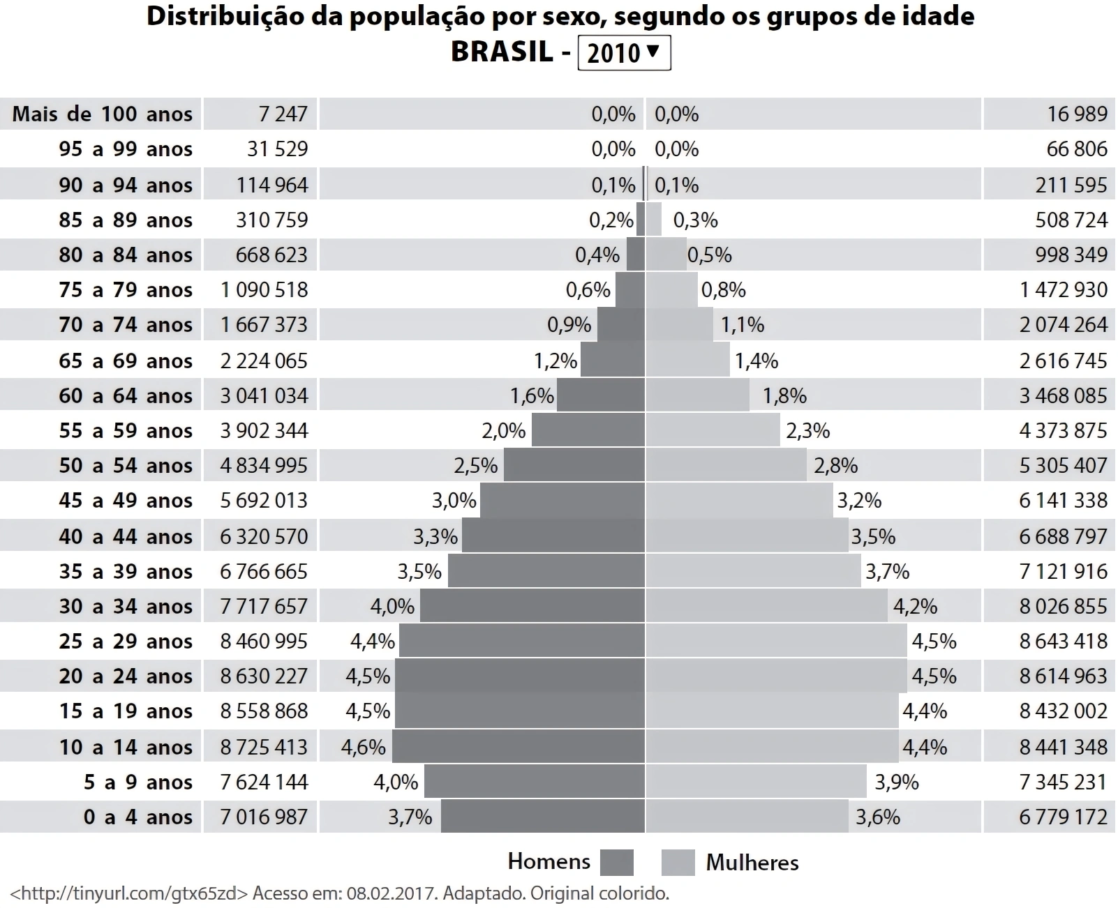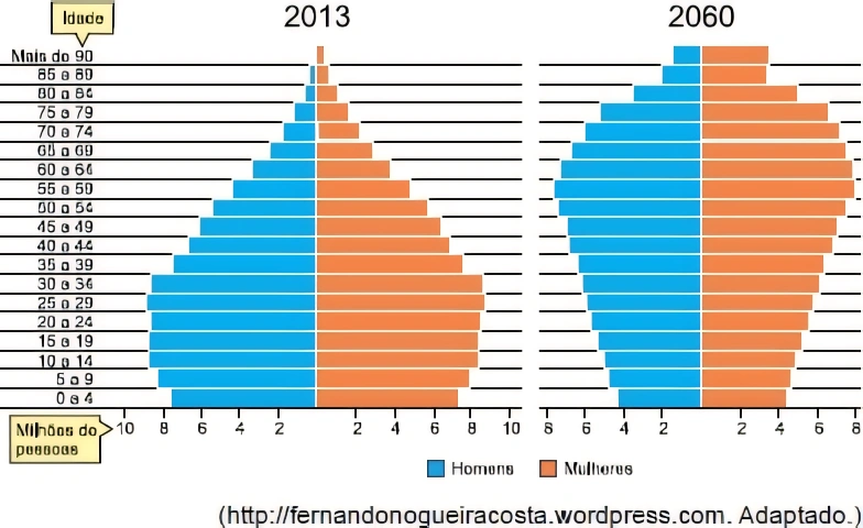 Observando essa pirâmide etária pode-se concluir que a população brasileira está