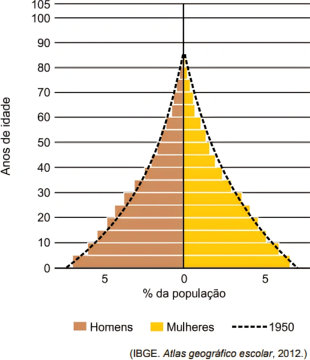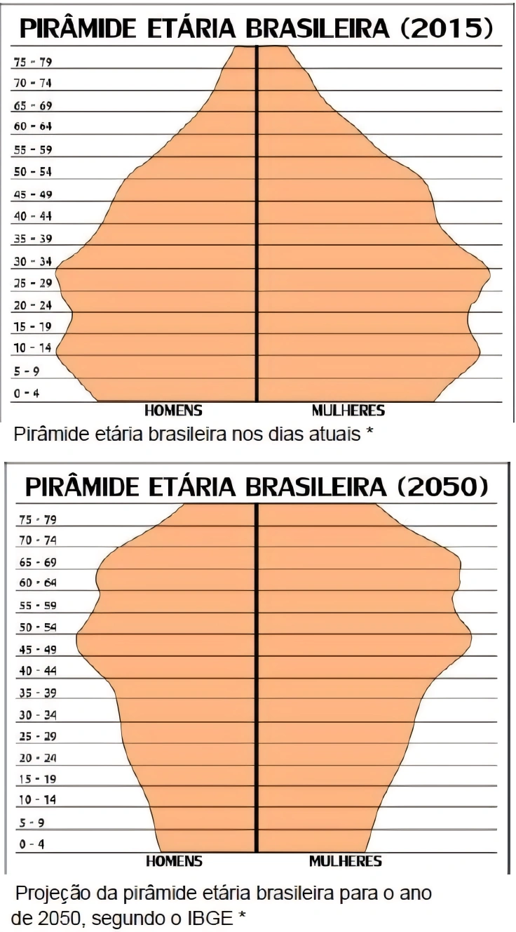 Com base na análise da pirâmide etária, a população brasileira apresenta