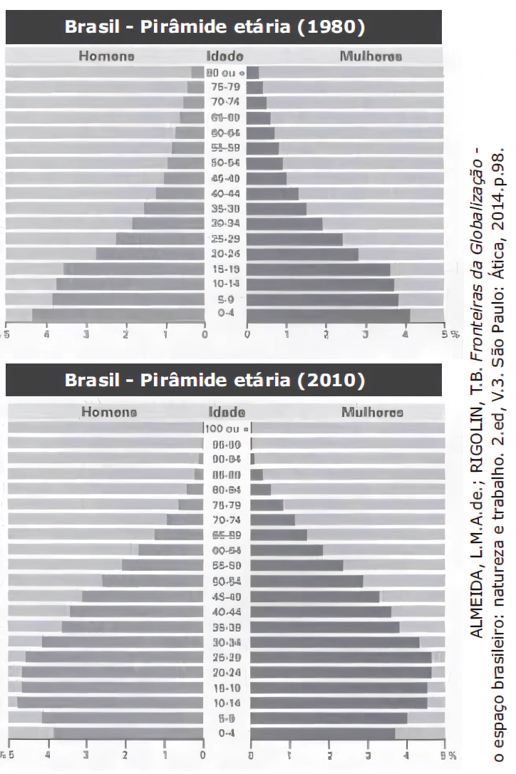 GeografiaUDESC2018Analise as pirâmides etárias do Brasil, considerando os itens sobre a estrutura populacional brasileira.