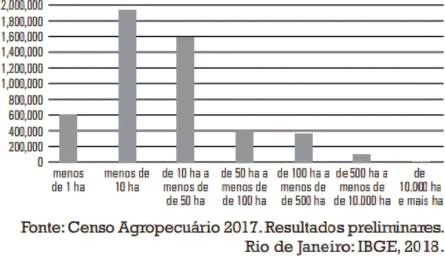 GeografiaESPM2020Observe os dados divulgados pelo Censo Agropecuário 2017 sobre a estrutura fundiária brasileira.