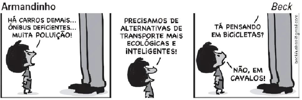 GeografiaUEFS2014A partir da mensagem contida na charge e dos conhecimentos sobre a circulação no espaço, ou seja, a delimitação da geografia dos transportes e seu papel social, pode-se afirmar:
