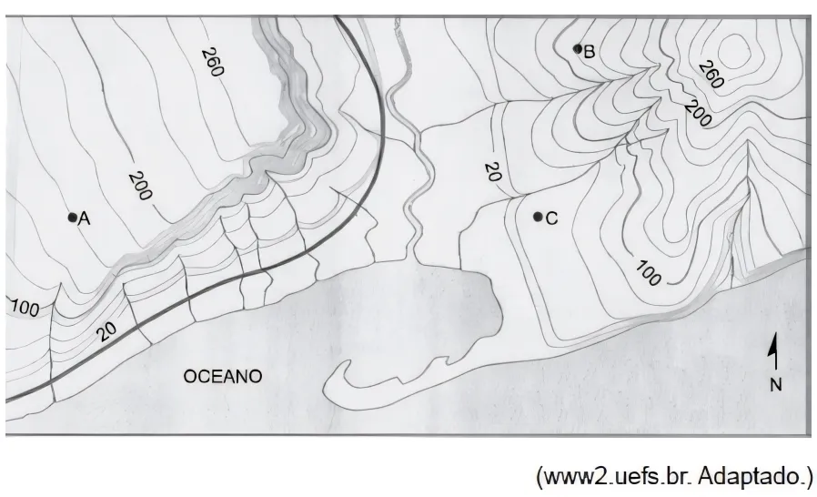 GeografiaUNIFAE2016A análise das curvas de nível permite afirmar corretamente que: