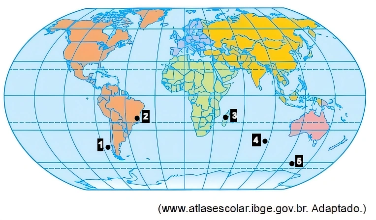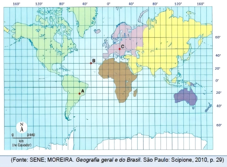 GeografiaUPF2017Analise o mapa múndi que segue e assinale a alternativa correta.