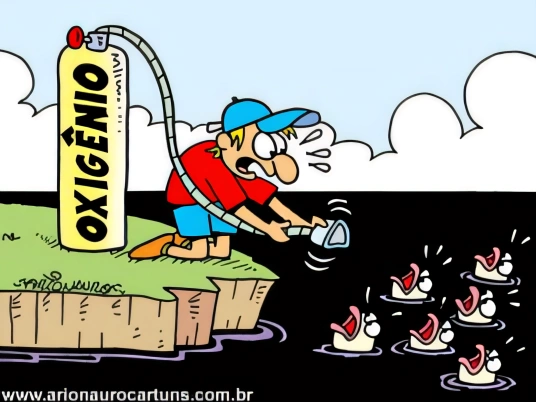 A charge faz alusão a um fenômeno provocado por poluição da água.