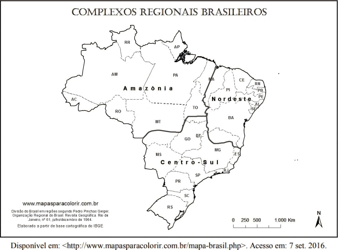 GeografiaCUSC2019A regionalização do território brasileiro apresentada no mapa é baseada