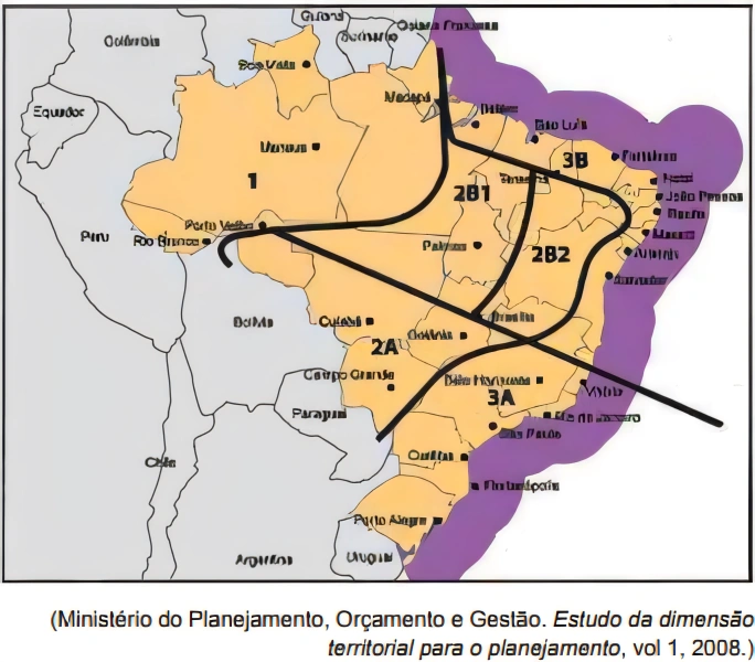 GeografiaUNISA2017O Ministério do Planejamento desenvolveu uma nova regionalização do território brasileiro, conforme mostra o mapa.