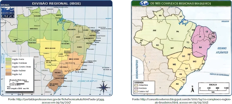 GeografiaAlbert Einstein2017Os mapas a seguir apresentam as duas divisões regionais utilizadas pelo Brasil, a Divisão Regional do IBGE e a Divisão em Complexos Regionais Brasileiros. Sobre essas duas regionalizações podemos afirmar que: