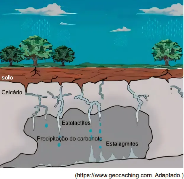 GeografiaFAMECA2018A dissolução das rochas calcárias que formam o relevo das cavernas possui sua origem relacionada ao processo de