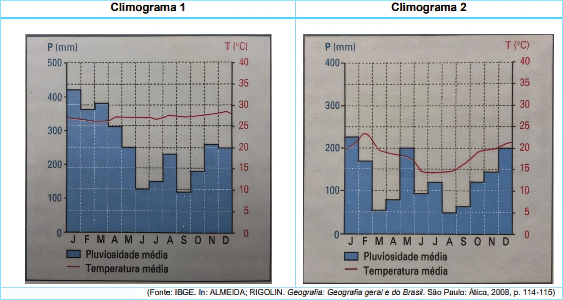 GeografiaUESB2016Tendo-se por base os climogramas e os conhecimentos sobre as paisagens climatobotânicas do globo, é correto afirmar:
