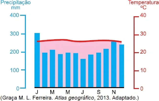 GeografiaUNIVAG2018Considerando os dados de temperatura e de precipitação, o climograma apresentado expressa o clima