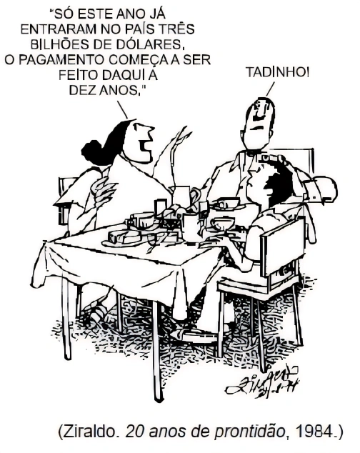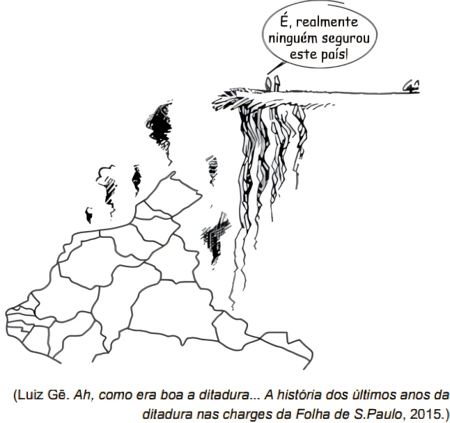 HistóriaUNIVAG2019No contexto histórico brasileiro do início dos anos 1980, a charge faz uma sátira a respeito