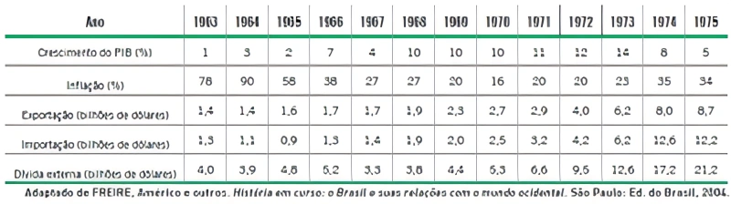 HistóriaUERJ2013Entre a posse do presidente João Goulart, em 1961, e a abertura política, iniciada em 1979-1980, aeconomia brasileira enfrentou conjunturas de crise e de prosperidade, perceptíveis nas variações dos índices econômicos apresentados na tabela a seguir.