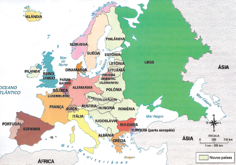 HistóriaIFSulDeMinas2015A Primeira Guerra mundial ficou marcada pela mudança do conceito de guerra. O modelo de guerra aristocrático, que caracterizou o exército prussiano nas guerras contra Napoleão, não mais existia. O exército alemão, em 1914, era uma eficiente e terrível máquina mortífera. O uso de novas armas com alto poder destrutivo, como bombas, aviões, tanques, rifles de precisão, metralhadoras, inaugurou uma nova forma de combate e novas estratégias de guerra. Isso fez com que a guerra fosse mais longa do que se esperava. O mapa abaixo apresenta um retrato das modificações territoriais que ocorreram na Europa após o fim da I Guerra Mundial.