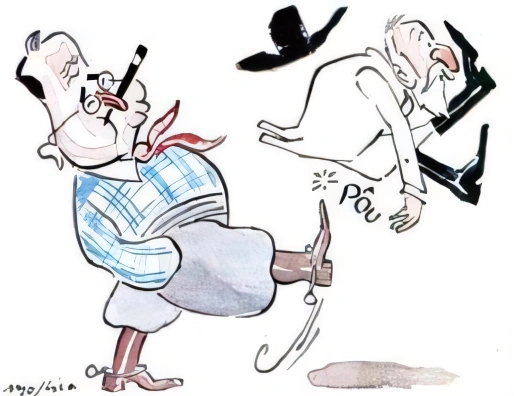 HistóriaUPF2011Observe a charge que mostra Getúlio Vargas chutando um velho, numa alusão à Revolução de 1930, que pôs fim à República Velha.