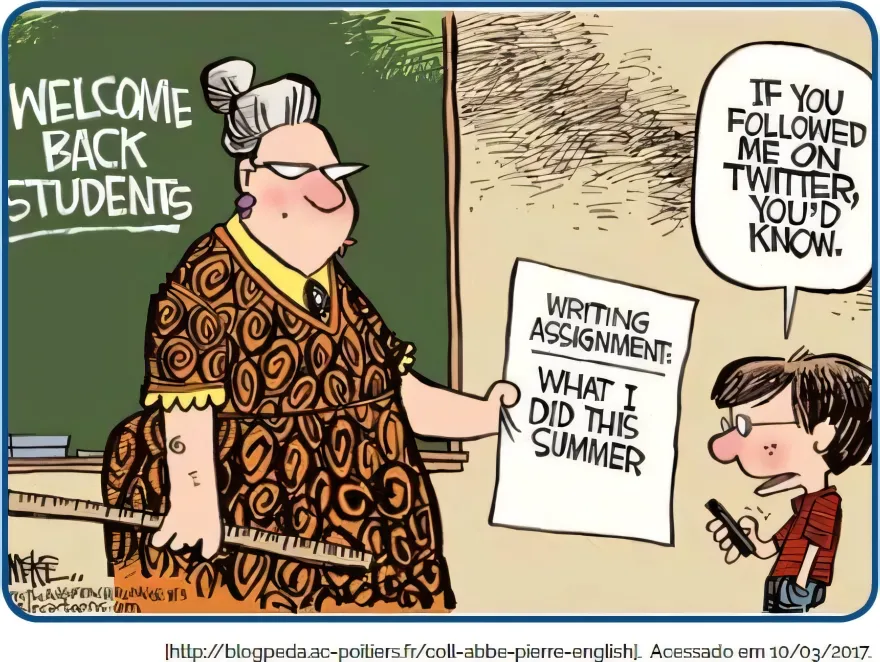 InglêsPUC-PR2017Qual é o fator central para a expressão do humor na tirinha?