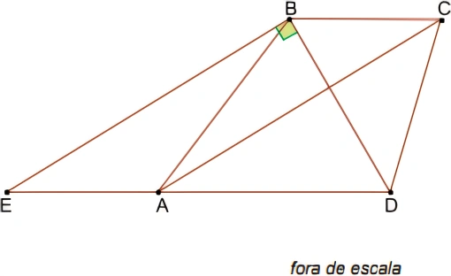 MatemáticaFEMA2021As diagonais AC e BD de um trapézio ABCD medem, respectivamente, 12 cm e 8 cm, e os pontos E, A e D são colineares, de maneira que ACBE é um paralelogramo e DBE é um triângulo retângulo.