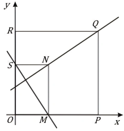 MatemáticaUPF2020No primeiro quadrante do referencial 𝑥𝑂𝑦 da figura a seguir, estão representados o quadrado 𝑂𝑃𝑄𝑅 e o retângulo 𝑂𝑀𝑁𝑆.