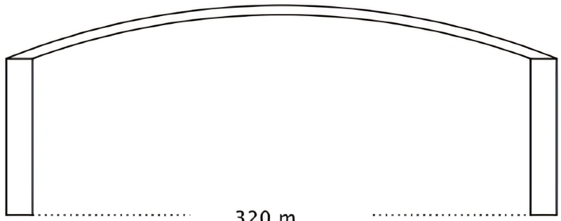 Com o formato circular, a altura máxima do vão em relação às extremidades aumenta em metros, de