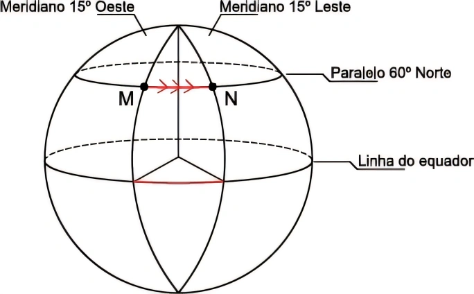 O trajeto que sai do Polo Norte, segue até a linha do Equador pelo meridiano de Greenwich, depois se desloca ao longo da linha do Equador até o meridiano 45°L e então retorna ao Polo Norte por esse meridiano tem comprimento total de