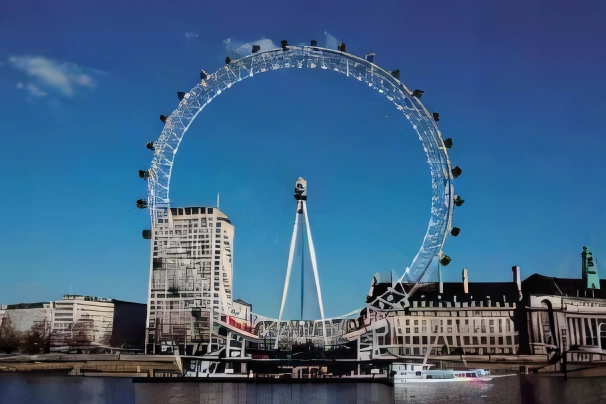 A London Eye é a quarta maior roda gigante do mundo e um dos principais pontos turísticos de Londres, na Inglaterra. Ela contém 32 cabines, que representam os distritos de Londres, atinge uma altura máxima de 135 metros e sua volta completa leva 30 minutos.