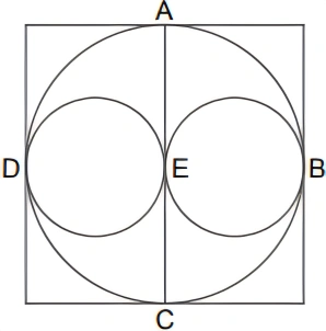 Considerando-se que AC e DB diâmetros perpendiculares e que uma formiga, partindo do ponto A, faz um percurso (ABED) de xπ cm, andando sempre sobre uma circunferência, pode-se afirmar que o valor de x é igual a