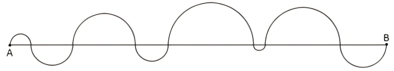 MatemáticaINSPER2016A linha curva indicada na figura tem extremidades em A e B e é formada apenas por semicircunferências.