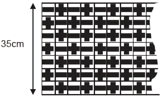 MatemáticaUPE2015Flávia gosta muito de matemática. Ela fez uma faixa decorativa com 35cm de largura e 7,5m de comprimento, formada por quadradinhos alternados com os sinais de adição e de subtração. A figura a seguir mostra um pedaço dessa faixa