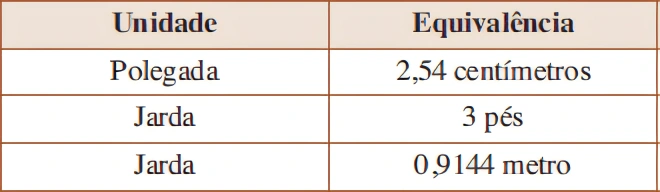 MatemáticaENEM2019O Sistema Métrico Decimal é o mais utilizado atualmente para medir comprimentos e distâncias. Em algumas atividades, porém, é possível observar a utilização de diferentes unidades de medida. Um exemplo disso pode ser observado no quadro.