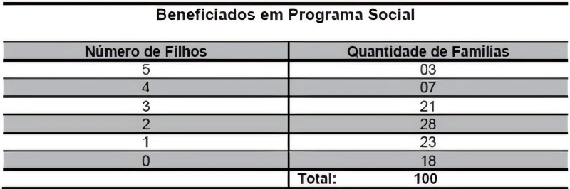 MatemáticaUPE2016Ao realizar o levantamento das famílias de uma pequena cidade do interior, cujos filhos são beneficiários de algum programa social, um pesquisador obteve os seguintes dados: