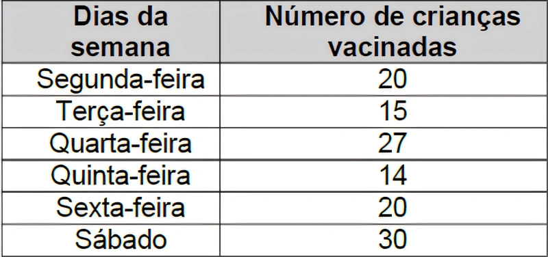 MatemáticaUPE2019A equipe de um posto de saúde montou o quadro abaixo para acompanhar o número de crianças vacinadas na primeira semana de junho deste ano.