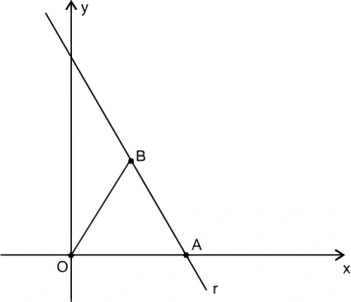 MatemáticaUNIFIMES2022Considere, no plano cartesiano, o triângulo de vértices O, A, B em que O é a origem do sistema de coordenadas e A é um ponto sobre o eixo x. Os vértices A e B estão na reta r, de equação 2x + y = 6, e os lados OA e OB têm mesma medida, como mostra a figura.