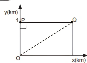 MatemáticaFBD2017A casa de uma pessoa M fica no cruzamento de duas ruas perpendiculares representadas na figura pelos eixos coordenados Ox e Oy. Para se encontrar com um colega em Q, ao invés de andar ao longo dos caminhos retilíneos OP e PQ, a pessoa M toma um atalho, ao longo da diagonal OQ, reduzindo a distância percorrida em um terço da distância de P a Q.