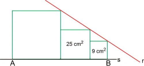 MatemáticaFACISB2018A figura indica três quadrados, sendo conhecidas as áreas de dois deles. Cada quadrado possui um vértice sobre a reta r e dois sobre a reta s.
