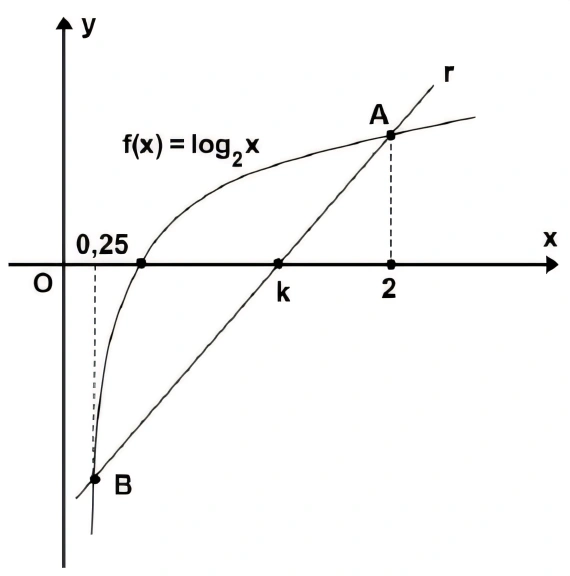 MatemáticaUFPR2016Considere o gráfico da função f(x) = log2x e a reta r que passa pelos pontos A e B, como indicado na figura acima, sendo k a abscissa do ponto em que a reta r intersecta o eixo Ox. Qual é o valor de k?
