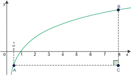 MatemáticaUEA2022Em um sistema de coordenadas cartesianas, considere o gráfico da função f(x) = log2 x, um ponto A de abscissa e os pontos B e C, ambos de abscissa 1/2, conforme mostra a figura.