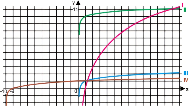 MatemáticaFGV-SP2018As funções logarítmicas f, g, h, p são dadas por f(x) = 10 + log x, g(x) = 10log x, h(x) = log(10x) e p(x) = log(x + 10). Observe os gráficos a seguir: