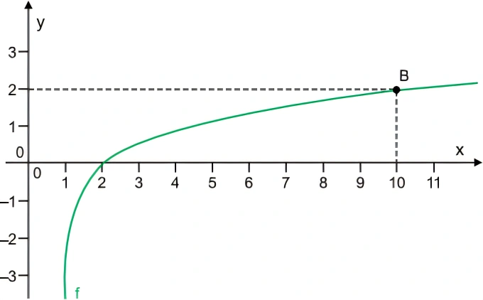 MatemáticaUNIFIMES2018Seja uma função logarítmica f tal que f(2) = 0 e f(10) = 2 e cujo domínio seja {x ∈ |R x > 1}. A figura mostra um esboço do gráfico de f.