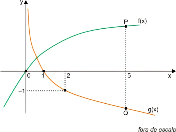 MatemáticaFEMA2016Num sistema de coordenadas cartesianas ortogonais, os pon - tos P e Q, ambos de abscissa 5, pertencem, respectivamente, aos gráficos das funções definidas por f(x) = log2 (x + a) e g(x) = log1/4xb, com a e b números reais, conforme mostra o gráfico.
